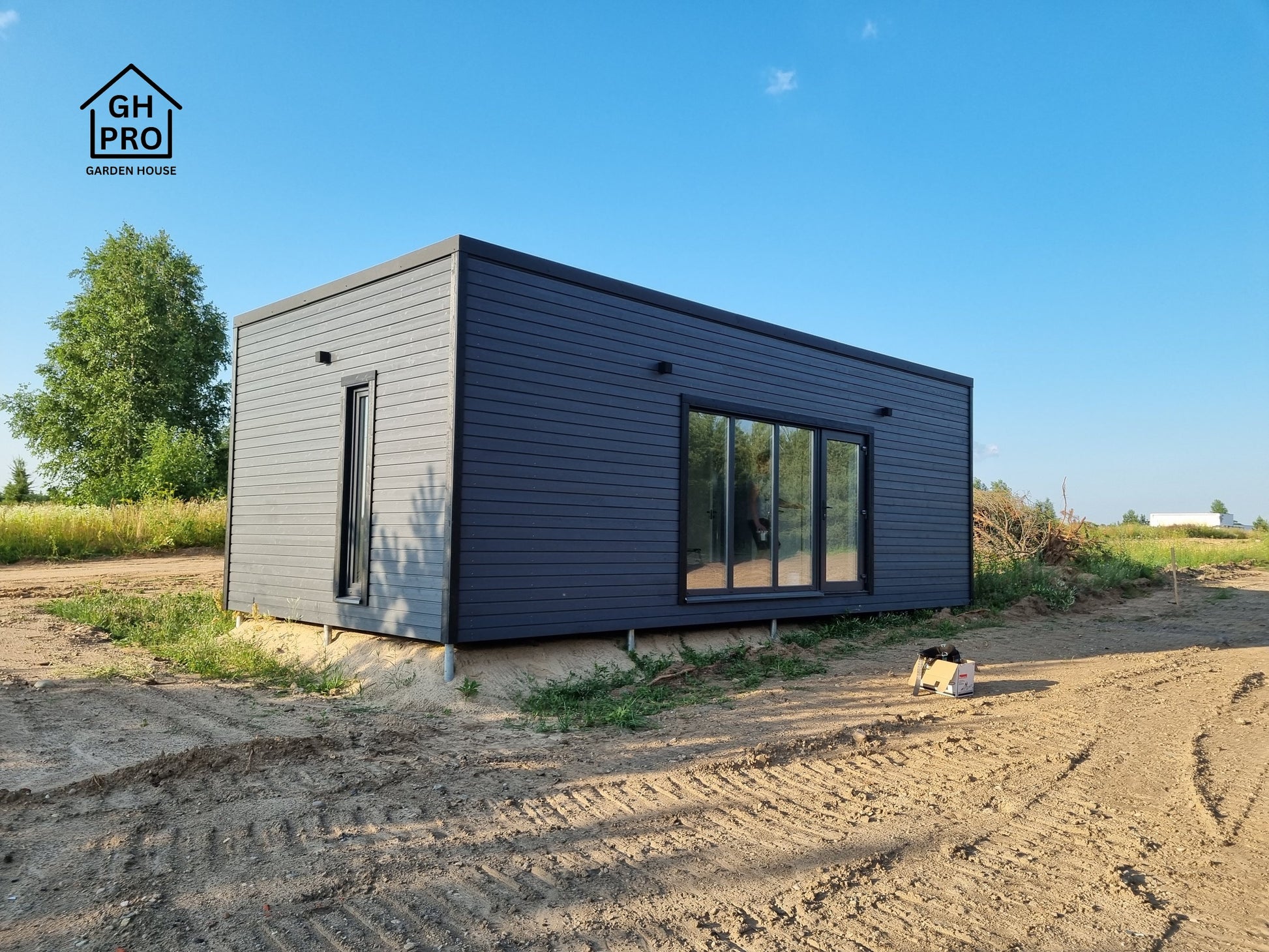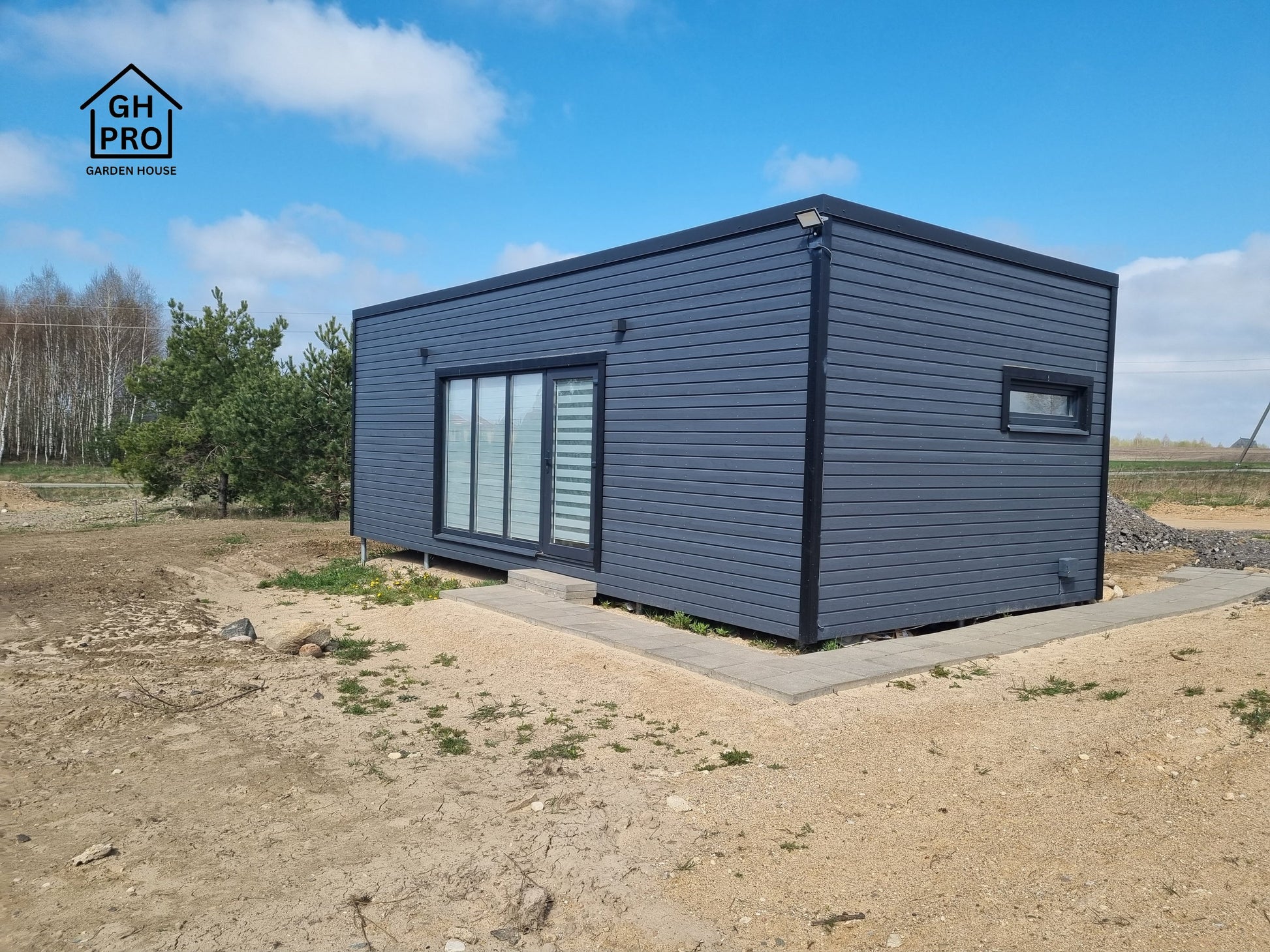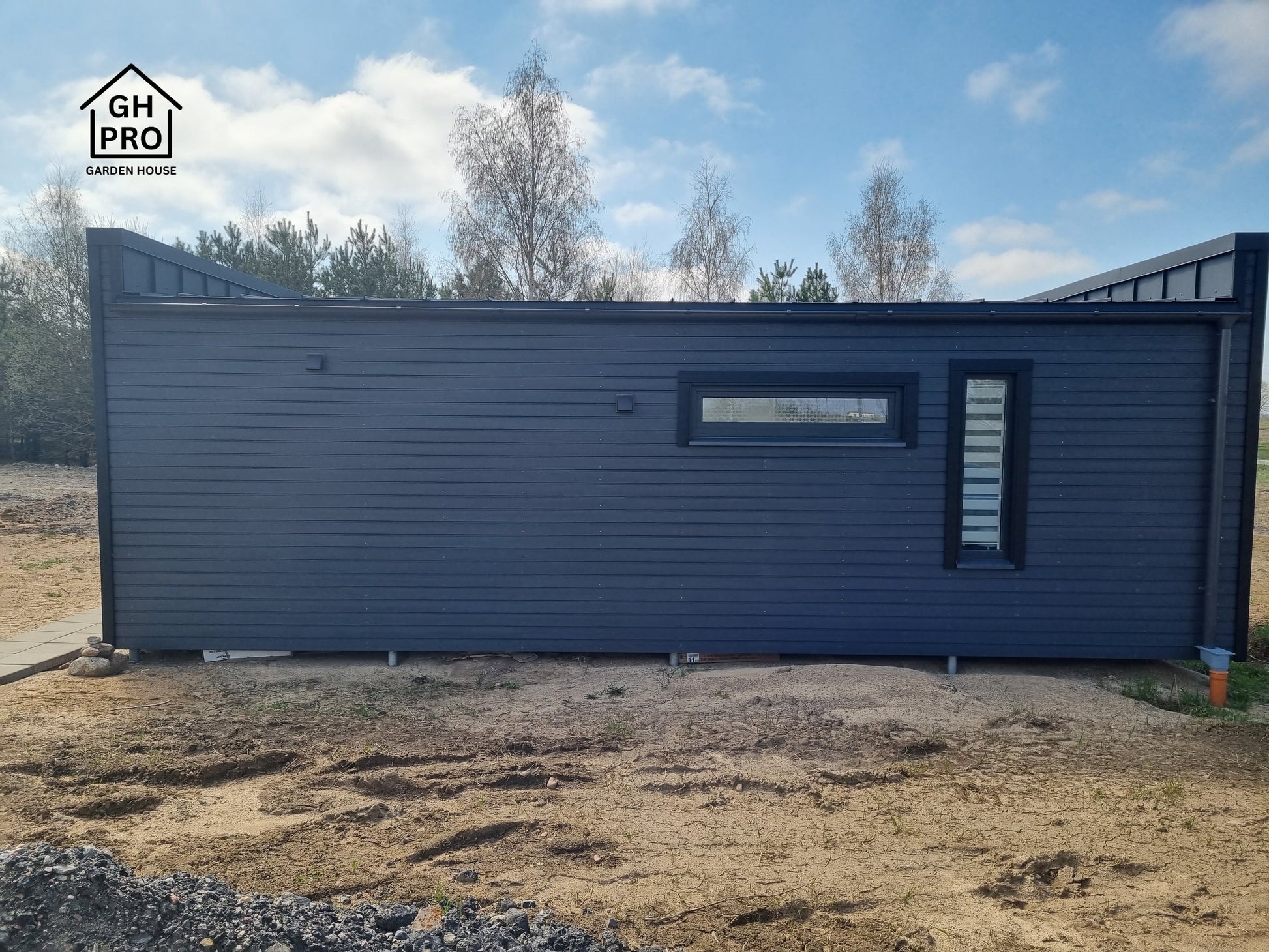 Building area - 43.5 m², living area - 35 m², ceiling height - 2.65 m, external dimensions - 4.65 m x 9.35 m.