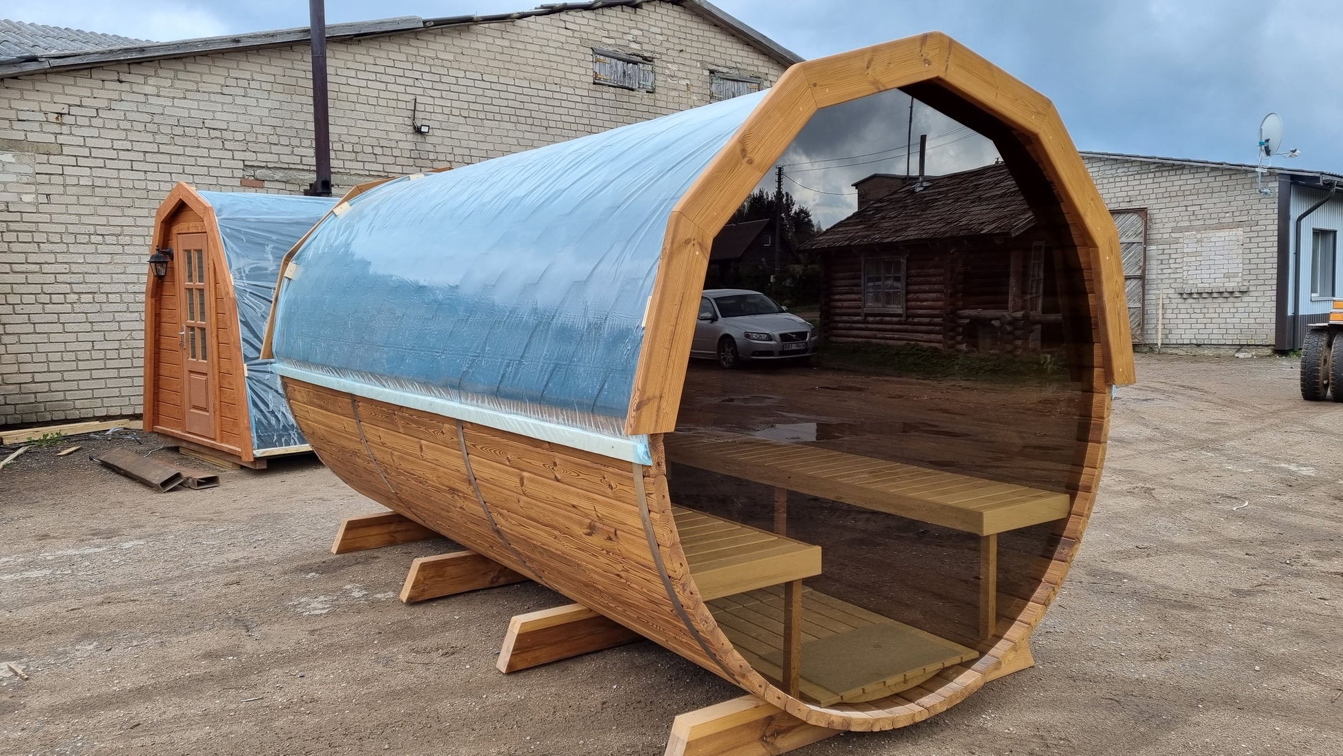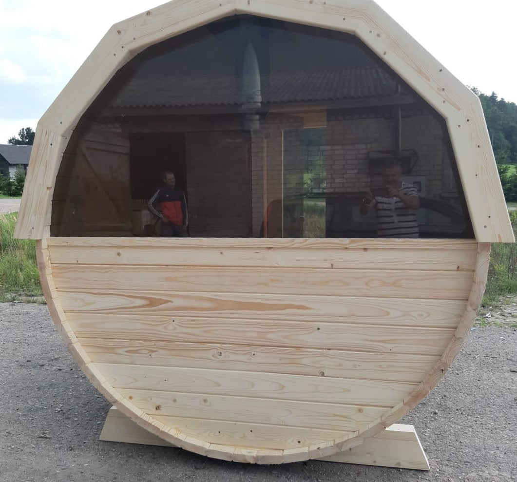 - Additionally, a full panoramic glass can be installed at the front or back of the sauna.